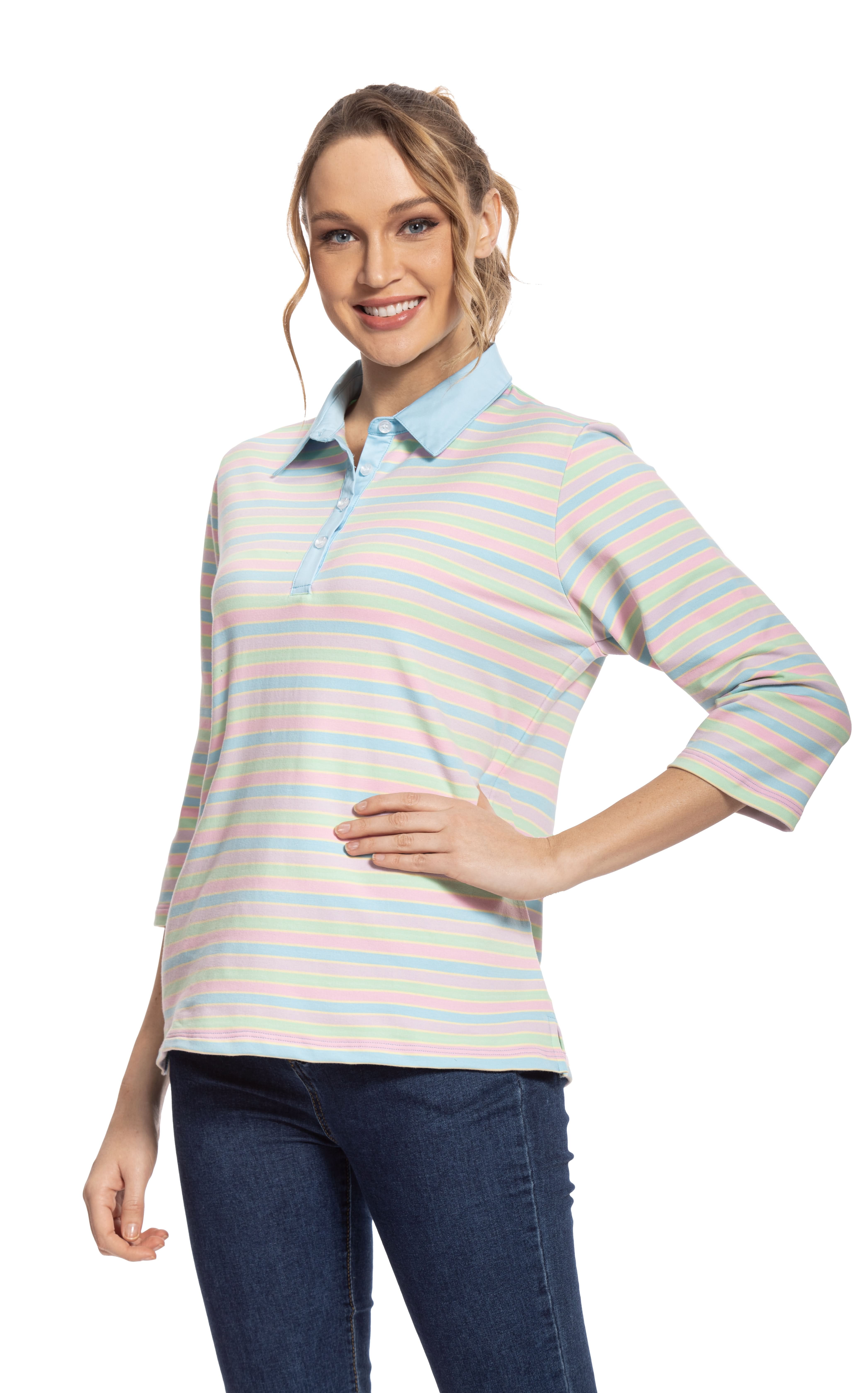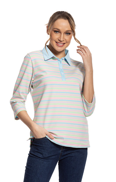 ¾ SLEEVE PLAIN COLLAR STRIPE POLO